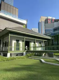 Let me introduce to you a new check-in attraction, located in One Bangkok shopping mall. There is an eye-catching place here. Walking to the outdoor area, you can see a small museum and a green cabin, which is particularly dazzling on the green grass. What’s even more surprising is that it’s open to the public for free! We crossed a wooden bridge and entered this unique cabin.