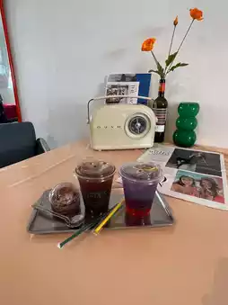 This cafe is sooo popular, it’s so popular. Everyone has already gone, but I just got to go, lol. When I actually went, it was really good. The real thing is much better than the reviews. I highly recommend that you come here. 🛋️ It’s a small one-room shop, but the decoration is so beautiful. Everything has its own style. There are so many photo spots. Every corner is beautiful. It’s a colorful cafe with perfect colors. 🥯 There are also a lot of drinks, including the shop’s own designs. There are so many things to try. I ordered a dessert, it was beautiful and delicious, lol. ✨ In conclusion, I highly recommend that you come here. It’s really good. I recommend coming before noon or in the afternoon, but don’t come in the late afternoon because there will be a lot of people.