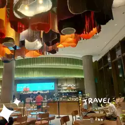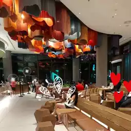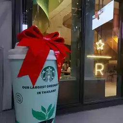 STARBUCKS, a famous coffee shop, has opened at the ONE BANGKOK project in the Parade shopping mall area. The large branch has a high ceiling that makes the shop look spacious and airy. The shop is beautifully decorated in warm brown tones. The ceiling is decorated with colorful fabrics, giving it a bit of a Balinese style. It's a great place to take pictures.