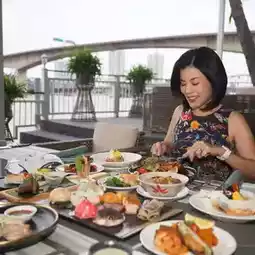 Sunday brunch at Trader Vic's Bangkok restaurant, Anantara Riverside Bangkok Resort, my favorite place. Good atmosphere, by the water, comes with a new theme✨ Tiki Jungle Sunday Bruch 🐆🌳 It's like entering Jumanji land. Premium food line, as expected of Trader Vic's, you can order without limits!!