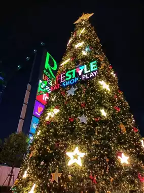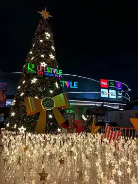 🎄Take Christmas photos at Robinson Lat Krabang. Wow with a Christmas tree with stars, a field of soft stars, and a tunnel of twinkling lights.