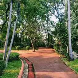 Bangkok, Thailand is a world-famous tourist resort city. Every day, thousands of tourists come to Bangkok for sightseeing and vacation. There are many urban oasis park attractions in Bangkok. This time we will introduce an oasis park attraction in the center of Bangkok: Chaloem Phra Kiat Forest Park. Oasis Park is located on the banks of the Chao Phraya River, close to the BTS station, with very convenient transportation. No tickets required, free admission. The park is as large as a football field. There are many tropical plants unique to Southeast Asia planted inside, which is full of greenery. There are also several large sculptures 🗿 in the park, which, combined with green vegetation and trees 🌲, are great for taking photos 📸. There are also facilities suitable for children in the park, and you can bring your children here to play parent-child games. There are not many tourists in the park, so it is quiet and peaceful. You can sit under the shade of the trees and enjoy the tranquility away from the hustle and bustle of Bangkok.