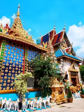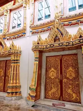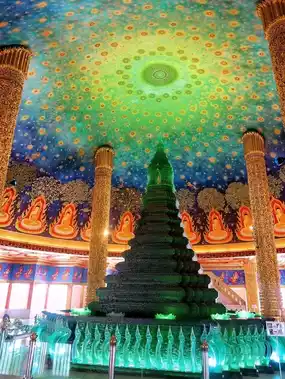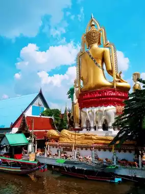 The Watergate Temple is a popular new landmark in Bangkok. The 69-meter-high giant golden Buddha is the third tallest Buddha in Thailand. It is in a meditation posture, symbolizing peace and mindfulness. You can see it from all four directions, and admission is free. There are many Buddhist collections in the Watergate Temple, among which the green glazed tower is very dreamy.