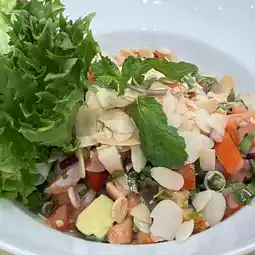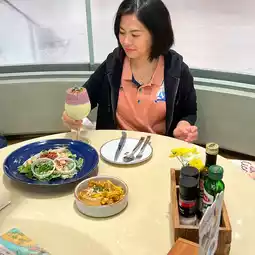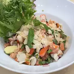 Come to Ohkajhu restaurant at The Mall Bangkapi. There is a very worthwhile menu, American Hot Spicy Chicken 🍗 with Caesar salad and grilled corn. The taste is crispy and importantly, there are 2 flavors of dipping sauce. Then order Salmon Avocado Salad, spicy and sour, and fruit smoothies. The interior of the shop is decorated to be comfortable. It is a place for families or friends to come and talk and eat food that is beautifully arranged on the plates. The service is good. The shop has fresh vegetables for sale in front of the shop.