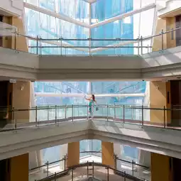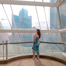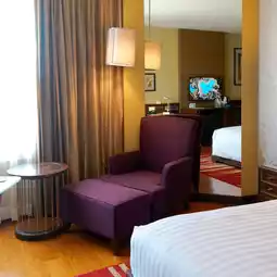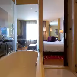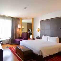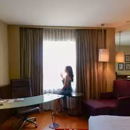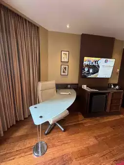 Fern likes the hotel's design, which is designed in the shape of a sailboat. The interior of the hotel is stylishly designed and decorated, looking luxurious. As for Fern's room, it is a Deluxe Executive Room with complete facilities, a comfortable king-sized bed, a work desk corner, a sofa corner for relaxing, a bathtub in the bathroom, and also has access to the Executive Club Lounge, which offers free food and drinks with a beautiful city view. The hotel also has a spa, fitness center, and swimming pool.