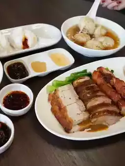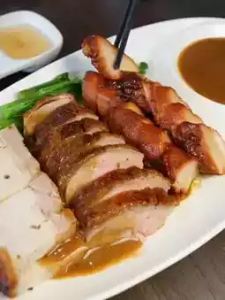 There are both roast pork, roast duck, soy sauce chicken, stewed beef and duck menus. Eat with hot steamed rice and the shop's dipping sauce. It's the perfect combination.