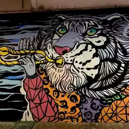 In the evening like this, let's find a place to walk and chill in Bangkok. This is a long walking street on both sides of the Ong Ang Canal. On both sides of the canal, there are things for sale on Saturday-Sunday nights, various foods, clothes, miscellaneous items. In addition, you can also enjoy beautiful wall paintings, both cool and reflecting lifestyles. I like it a lot.