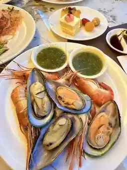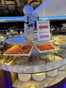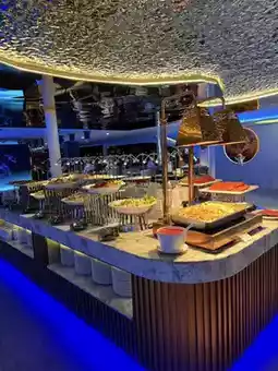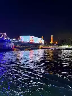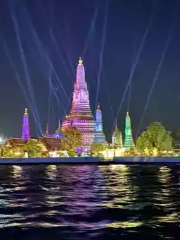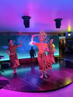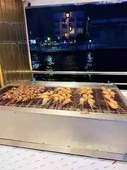 Had a chance to take a dinner cruise on the Chao Phraya River. We boarded the boat at Asiatique pier. It was a large 3-story boat with a space theme. The food on the boat was buffet style. There was salmon, seafood and many other foods. It was so much to eat. Desserts, fruits, tea, coffee, ice cream. Both eating and watching the beautiful scenery on both sides were very worthwhile. On the boat, there was also a Thai Khon performance and soft singing along the way. There were a lot of people on the boat but it was not cramped. You could walk and get food and take pictures comfortably. The boat left Asiatique and went to Rama VIII Bridge and returned to the boat to end and send us back to Asiatique as usual. The total time was about 2 hours. It was a very good experience. If anyone is free, I recommend changing the atmosphere to eat on the boat. There are many boats, many prices and many times to choose from according to your convenience. Or you can choose to buy on Trip, which is convenient and the price is very good. Recommended. #Get a discount without relying on luck #Bangkok #What to eat in Bangkok #Travel to Bangkok #Where to go in Bangkok #Sightseeing cruise #Chao Phraya River cruise #Dinner cruise