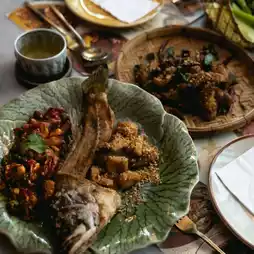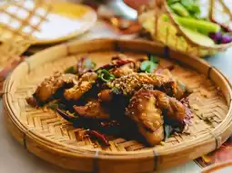 "Fried Chicken with Turmeric" This dish is a highlight that comes for free in the set, but the taste, appearance, and the plate are beautifully decorated. You can smell the spices. I like it a lot.