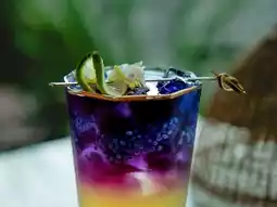 "Butterfly Pea Honey Lemon" In addition to being beautiful, the taste is strong and delicious. Don't forget to bite the lemon wedge with honey on top. I must say that it is very smooth and cool.