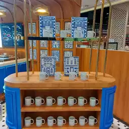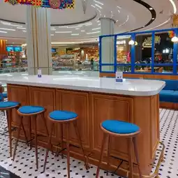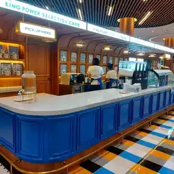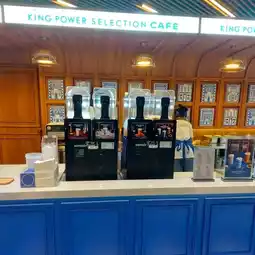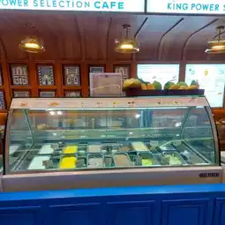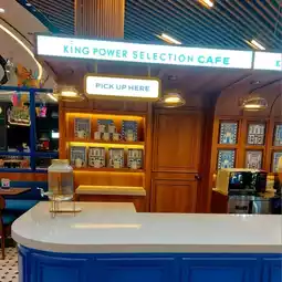 A cafe located in King Power Rangnam, decorated with wood and blue, it really catches the eye. Another highlight is the colorful floor decoration, like a sarong. It is a cafe that is decorated very invitingly. They serve both drinks and ice cream. They also have cool mugs to keep as souvenirs.