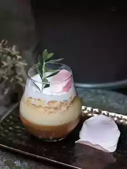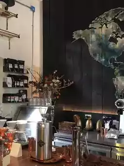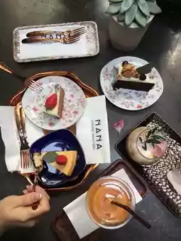 A classic, vintage cafe decorated with flowers all over the shop. The whole shop is decorated with flowers in almost every corner, hidden in the corners, on the tables, walls, in the cakes, and even in the drinks.