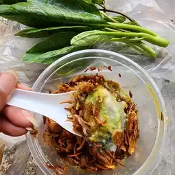 #Delicious restaurant in Barthatong Aunt Nee, shrimp in fish sauce, Barthatong is another restaurant that anyone who comes to Barthatong should not miss. The restaurant serves shrimp in fish sauce and oysters. The shrimp in fish sauce is large, fresh, and the meat is very crispy. The oysters are also large, fresh, and not fishy at all. The vegetables are clean and topped with seafood sauce that is not too strong but has a complete flavor. Spicy, sour, sweet, and garlic pickle juice. The taste of garlic and blended coriander is delicious. People who can't eat spicy can eat it. Topped with fried shallots is the best.