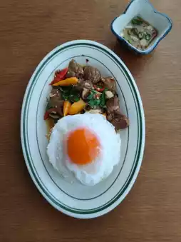 Atmosphere: A homey cafe with a cute little Thongkwao who welcomes you. He walks around the shop. This place is pet friendly. You can bring your pet to the shop. You will see dogs coming and going all the time. The staff at the shop are very cute and provide excellent service. The mother cooks very delicious food. The coffee is also delicious. I am very impressed. It is warm and the shop is beautiful.