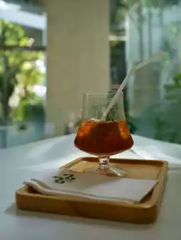 📌 For those who are looking for a quality coffee shop without having to worry, the menu that I tried was the iced Americano, medium roast. This place is not too sour. The coffee aroma is fragrant and the taste is strong. There are many types of coffee beans. If you like any type, you can consult the barista. The atmosphere is natural, green and shady, not too hot. You can sit both outside and inside. The inside is very clean. The staff is always clearing the table. 🌳 No matter where you look, it is refreshing with trees. It is clean and the air is very good.