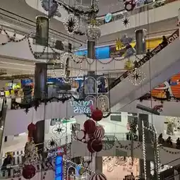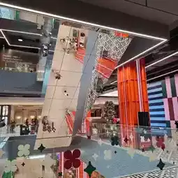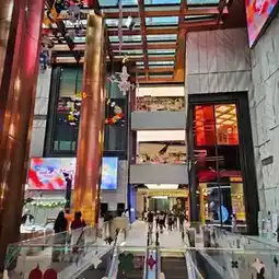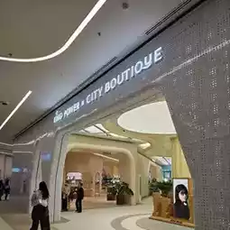 A shopping mall with both a department store, a hotel, and green space. At this time, restaurants are not open in all zones. It is expected that in a while