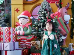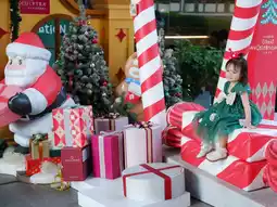 Nong Chilin invites you to go shopping, see, and take beautiful pictures at #CentralLadprao. There is a huge Christmas tree decorated with lights, along with a tunnel. Every time I come here, Nong Chilin has to come and walk around. Inside the tunnel, taking pictures is super beautiful. There is also a giant bear wearing a super cute Santa costume. Another point is the BTS skywalk on the 2nd floor, which is the entrance to the Santa village that is super cute.