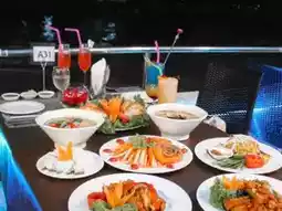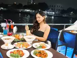 🥂🛳️ Add some sweetness and invite your lover to a romantic dinner date! On the newest luxury ship, UNICORN CRUISE, a 2-story ship. The first floor is an air-conditioned room and the second floor is an open-air room with a front of the ship, allowing you to sit and relax while enjoying the beautiful view and the night atmosphere.