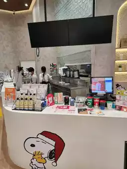 The interior of the store is decorated with Snoopy, which is cute ❤️