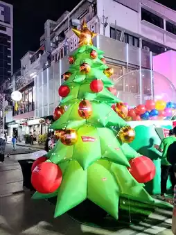 #SeeChristmasLights Let's take a tour of the Christmas lights and enjoy the festive atmosphere at Siam Square. We found two Christmas trees. The first is the brightest in the area, decorated in a yellow theme with a brightness level of 10! It's decorated with cute candy crane and snowman ornaments. The other is themed around a fragrant inhaler, a cute inflatable green tree with a mascot to add to the fun and atmosphere. Don't forget to take some beautiful photos at Siam Square.