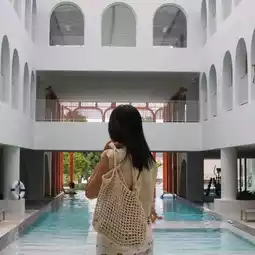 As soon as you step into the hotel area, you will feel the relaxing tranquility. The clean white building is decorated with curves that reflect luxury and simplicity. The marble staircase and natural light through the glass roof create a beautiful dimension that makes you want to stop time.