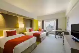 This hotel boasts a unique design, with stunning black and white tiles and a deck bar on the 23rd floor. The Xin Tian Di restaurant on the 22nd floor offers delicious Cantonese dim sum, while the Finishing Post bar provides cocktails or whiskey accompanied by soft music. Planning an event? The hotel features a White Room that can accommodate 400 people and seven meeting rooms on the 21st floor, making it an ideal venue for events. Don't miss the pool and spa, especially the breathtaking Bangkok skyline view by the pool!