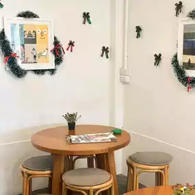Happy Mum Happy Me is a cafe that I have visited for the third time. This cafe gives me the feeling of visiting a friend's house. The atmosphere is lovely and warm, very homey. The food is very delicious. It is in the "Mumcook" style, like a friend's mother cooking for you. Every menu I ordered was delicious. I recommend the orange salad and balsamic. It is very delicious. As for the coffee menu that I really love, it is Soul Coffee. It is very smooth. And this place is also a pet friendly cafe. You can bring your pets to eat and drink coffee. And during this happy festival, they are open from December 28-31, 2024. It is a long holiday. Come and relax. The most special thing is that they have an Art Toy star-picking activity. When you finish eating, you can also pick up a dipping box. It is very worthwhile. 🎄