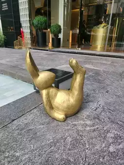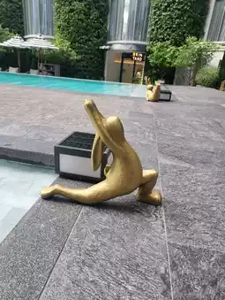 There was a cute rabbit object doing yoga by the pool🐰
