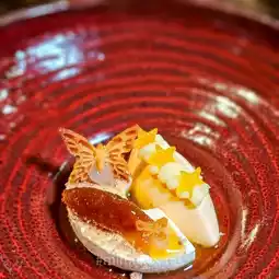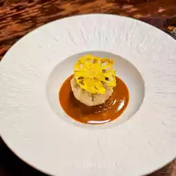 The bouncy, chewy shrimp mochi is served with sweet and sour Phulae pineapple, lime and acacia to add a refreshing scent and rich bisque.