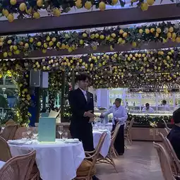 Located at Gaysorn Village, next to the Intercontinental Hotel, the restaurant is decorated in blue and yellow tones, with melons adding to the Italian garden atmosphere.
