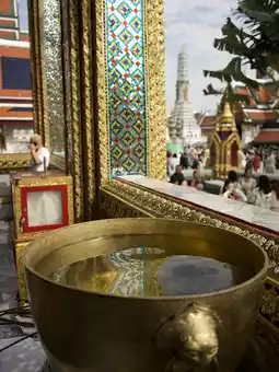 The entrance fee is 500 baht, and there is a strict dress code, prohibiting even men from wearing shorts.