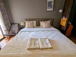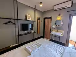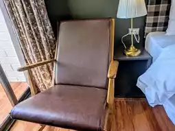 I booked a 6-ping deluxe double room, which has a small balcony. The walls are painted in a deep emerald green, giving the room a calm and elegant feel. There's also a rocking chair.