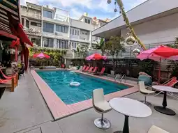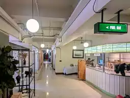 The first floor serves as the reception lobby, restaurant, and pool area, all designed in a very British Instagrammable style. The open and lively atmosphere is perfect for young travelers, and the pool is a popular spot.