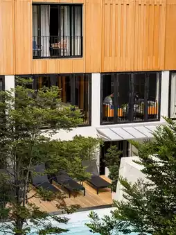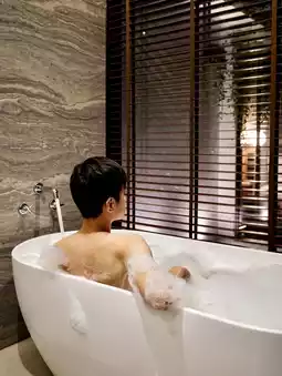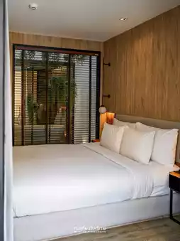 🛀🏻 The room that Ad will stay in is an L Studio King Room with Pool View, which costs 2,500 baht. Also, there is a food coupon to be used at the café downstairs. Booking through Trip.com is very easy and convenient. The room has a bathtub in the middle, and to make it even better, there is a green tree to enjoy. Furthermore, the balcony overlooks the swimming pool💦. Oh! Ad loves that there is a private sofa area to relax, making good use of the space.