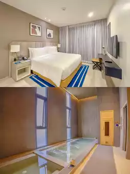There is a super large swimming pool, a 24-hour gym with a great view, a golf 🏌️ simulation experience room (guests can experience it for free for 30 minutes), as well as a Japanese hot spring bath and sauna. If you like to lie in the hotel like me, you can rest assured that you will not be bored even if you stay in the hotel for a day🥳