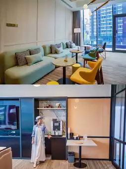 There are social hours in The Den on the 9th floor every Monday to Wednesday evening (17:30 - 18:30). The atmosphere is very good. Not only can you taste free food and wine, but you can also make friends from all over the world. I met a British couple who are traveling around the world. They love giant pandas very much. I am looking forward to their next stop in Chengdu! The Den also has a Co-Working Space which is open 24 hours a day. The window view is beautiful and it is comfortable for both working and resting. There is no time limit for coffee and you can even order Thai milk!