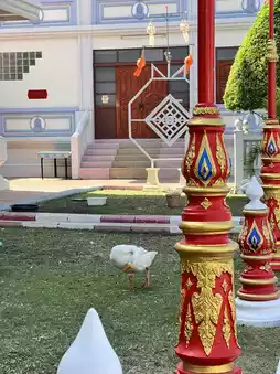🙏 Anyone who lives around here can come and pay homage to the Buddha. We sat there for a while and felt great. They also sell food and drinks. On days when there are no events, the temple is extremely quiet. There is a pond and ducks at the back. They don't allow feeding the fish here, but the fish are very big. 🐠