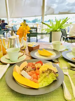 The breakfast 🍳 is very diverse and is located by the Mekong River. The scenery is very pleasant, and the hotel also has private barges to deliver to the entrances of different large shopping malls.