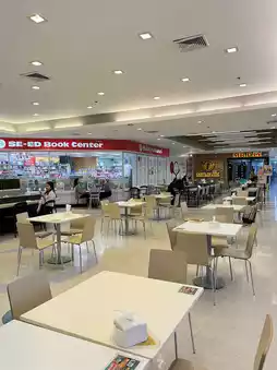 Hypermarket, Nawamin area, Bangkok, has 2 floors. The first floor sells various products, dessert shops, vegetables, fruits, fresh food, various household items. The second floor is a food center.