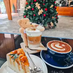 Another cafe that has a very cute Christmas theme, with a big bear Christmas tree in the middle of the shop. Plus, there are many festive corners for taking cool photos, both inside and outside.