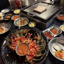 Highlight: The marinated crab is a must-try. The dipping sauce that comes with the marinated crab is excellent and pairs perfectly. You can inform the staff how you like your pork belly cooked. The taste is delicious and of good quality. Side dishes are unlimited. Order hot kimchi soup to cut the greasiness of the marinated crab or grilled pork, which goes perfectly together. If you are a Korean food lover, you shouldn't miss this place as it offers authentic Korean BBQ with quality worth the price.