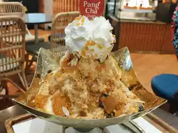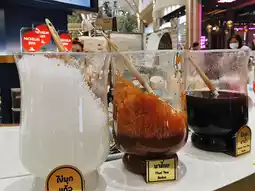 A famous Thai tea shop that has been in the Michelin Guide for 6 years with its distinctive Thai tea from blending 5 types of tea together, which is the shop's unique tea recipe, along with chewy toppings, which is an upgrade to a more modern Thai tea menu. This branch is located in a newly built area of the mall called Tree Chamber, a new restaurant zone. Pangcha's shop is right in the middle, made into an open-air shop with seating inside the shop, decorated in a brick block style to look modern Thai.