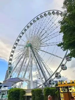 After lining up and getting on the Ferris wheel, it slowly moves towards the top. 🍀
