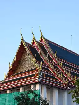 Wat Phra Kaew is renowned for its breathtaking architecture and intricate detail. The temple complex is adorned with colorful glass and ceramic mosaics that bring the structures to life under the bright Thai sun. The buildings within the complex feature traditional Thai architectural elements, including gilded spires, ornate pediments, and elaborately carved decoration, making it a feast for the eyes and a testament to the craftsmanship of Thai artisans.