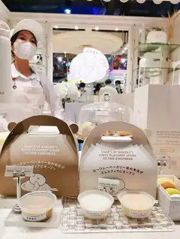 The shop's atmosphere is mainly white, decorated with baking equipment to add a homemade feel. The shop uses seals as its brand mascot, so souvenirs such as water bottles and seal dolls are also sold.