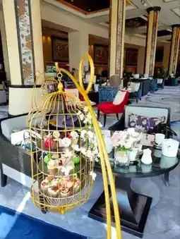 Enjoy afternoon tea in the luxurious lobby lounge of this 5-star hotel🍰