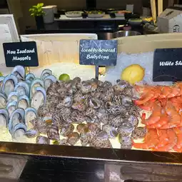 บุฟเฟต์นานาชาติ แบบจัดเต็มไม่อั้นค่ะ ไม่ว่าจะเป็น ffoie gras, king crab, jumbo prawns หรือสเต๊กเนื้อที่สามารถสั่งกับเชฟเลือกระดับความสุกได้ตามต้องการ ฟินไปเลย
