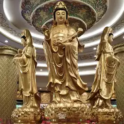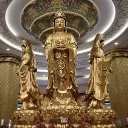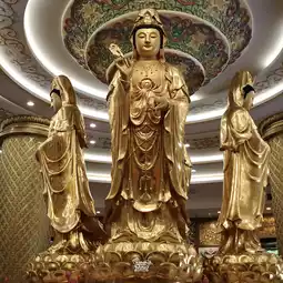 Inside the large golden statue of the Goddess of Mercy, there is the Bodhisattva Guan Yin in the middle of the chapel. There are 4 postures in total: the posture of presiding over children, the posture of granting blessings, the posture of granting wealth, and the posture of presiding over good fortune.