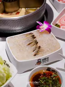 #Chinese restaurant CQK Mala restaurant, Huai Khwang branch, looks like it was recently renovated. It stands out with its warm atmosphere and full decoration. The restaurant is spacious with many tables to choose from. It is divided into several rooms and zones. Each room is decorated according to a different theme, giving a variety of feelings. Every corner is beautiful to take pictures of. The staff provides fast service, whether you come alone, as a couple, as a family, or as a large group. The restaurant has space to meet your needs.