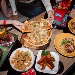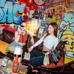 ✨A rooftop bar that is so awesome! Decorated in the style of teenagers from the 80s, the shop is decorated very well. Every corner is a great place to take pictures!! Great vibes, great atmosphere, ready to serve fun with a menu of 80s-themed drinks and delicious comfort food. There are seats to choose from both inside and outside. Have fun with DJs and bands playing cool music. Enjoy the atmosphere with an outdoor movie screen that shows every night! 🎵🎙️